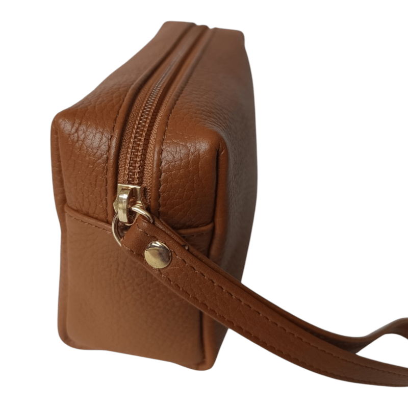 Este bolso de mano en piel cuero combina estilo y funcionalidad en un diseño compacto. Su textura granulada y su tonalidad cálida aportan un aire sofisticado, mientras que su correa lateral lo hace práctico para el día a día. Perfecto para quienes buscan un accesorio elegante.